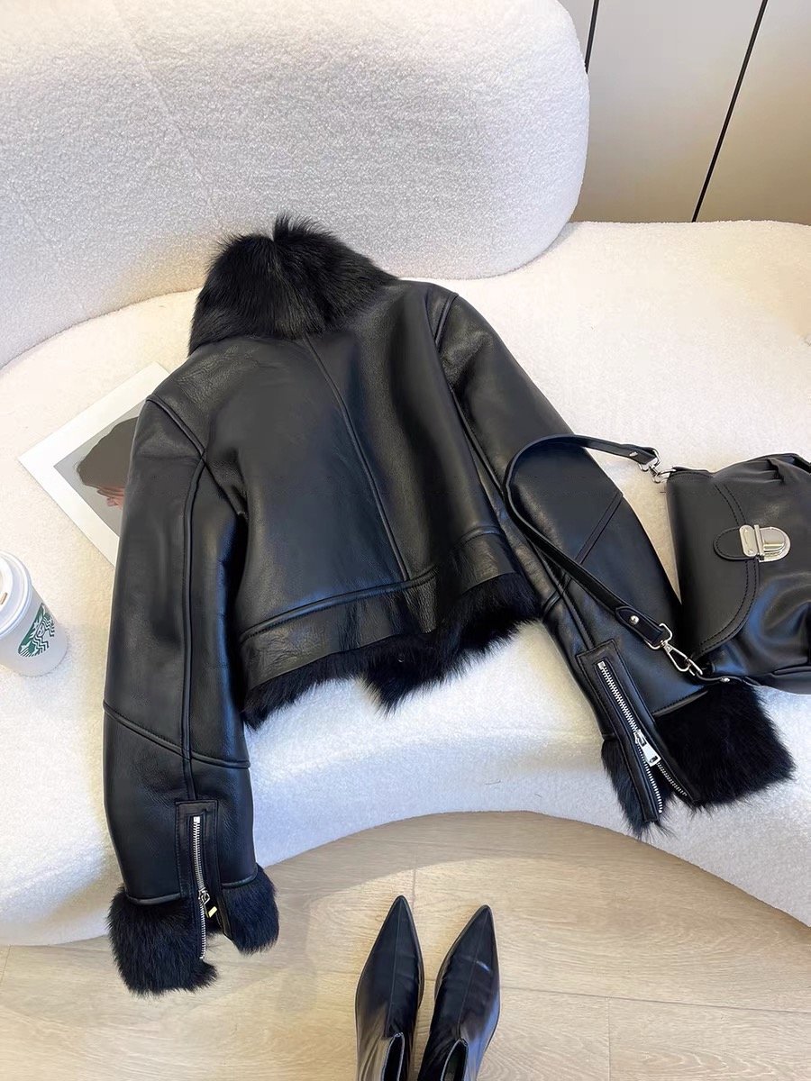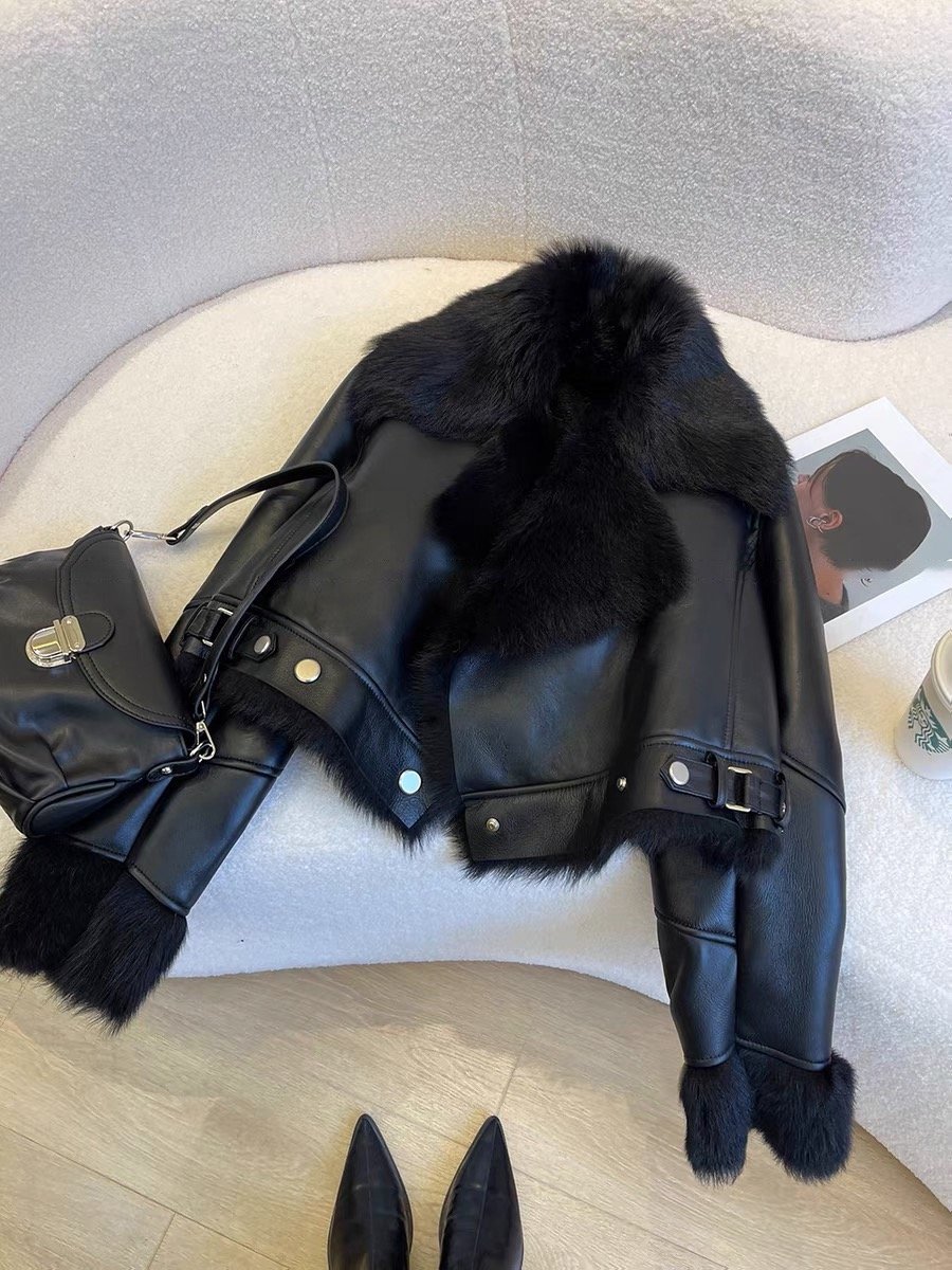 Chaqueta elegante de cuero sintético con detalles de peluche suave que le dan un estilo sofisticado y moderno. Súper abrigada y perfecta para un look chic