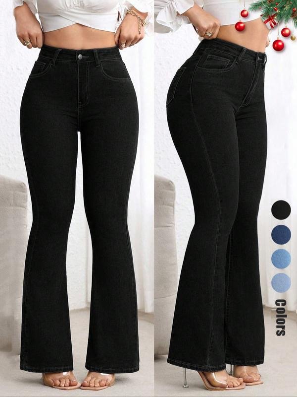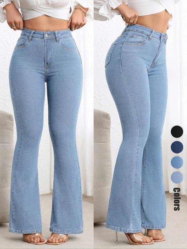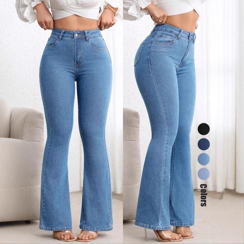 Jeans de tiro alto con ajuste slim que moldea la figura y corte acampanado que estiliza y alarga las piernas. Tela stretch cómoda, efecto realce y acabado moderno ideal para cualquier ocasión.