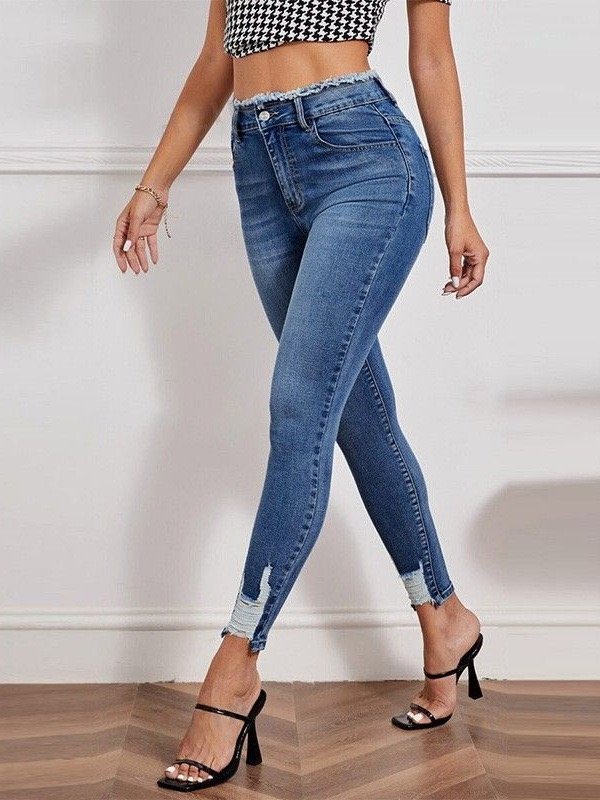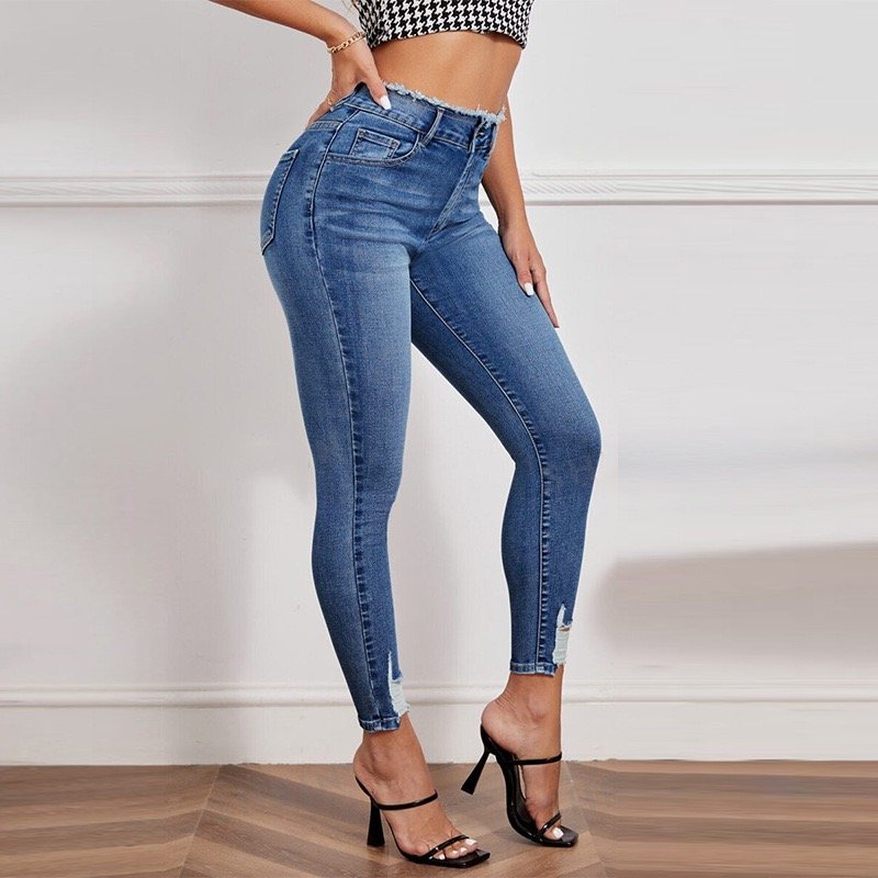 Jeans de cintura alta con efecto push up que moldea, estiliza y realza tu figura. Su tela elástica brinda ajuste perfecto y máxima comodidad, mientras su diseño moderno con detalles desgastados crea un look sexy, moderno y en tendencia. Ideal para destacar tu estilo en cualquier ocasión.
